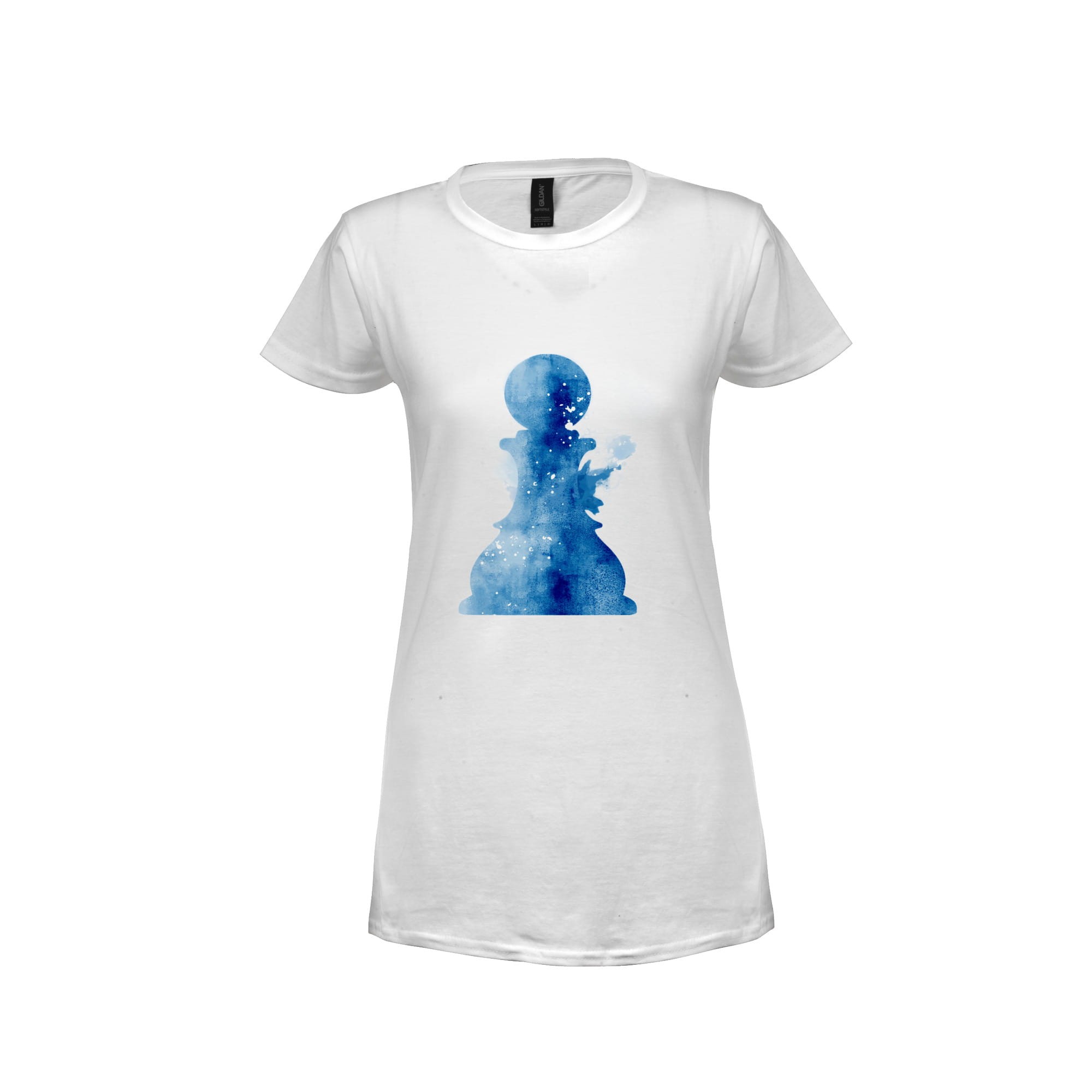 Biała damska koszulka dla szachistki z eksplodującym pionkiem "Pawn splash"