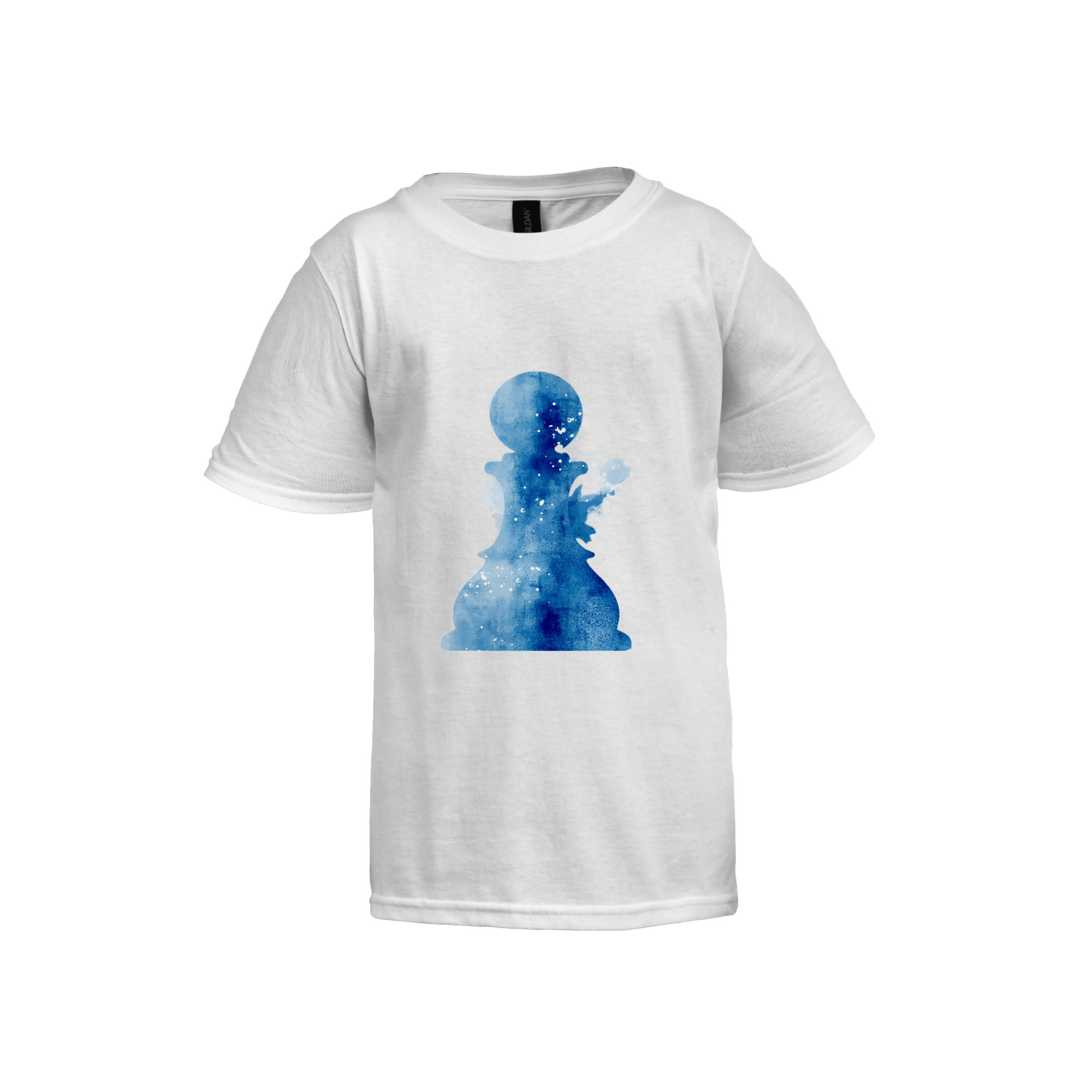 Biały T-shirt dziecięcy dla szachisty z grafiką pionka "Pawn Splash"