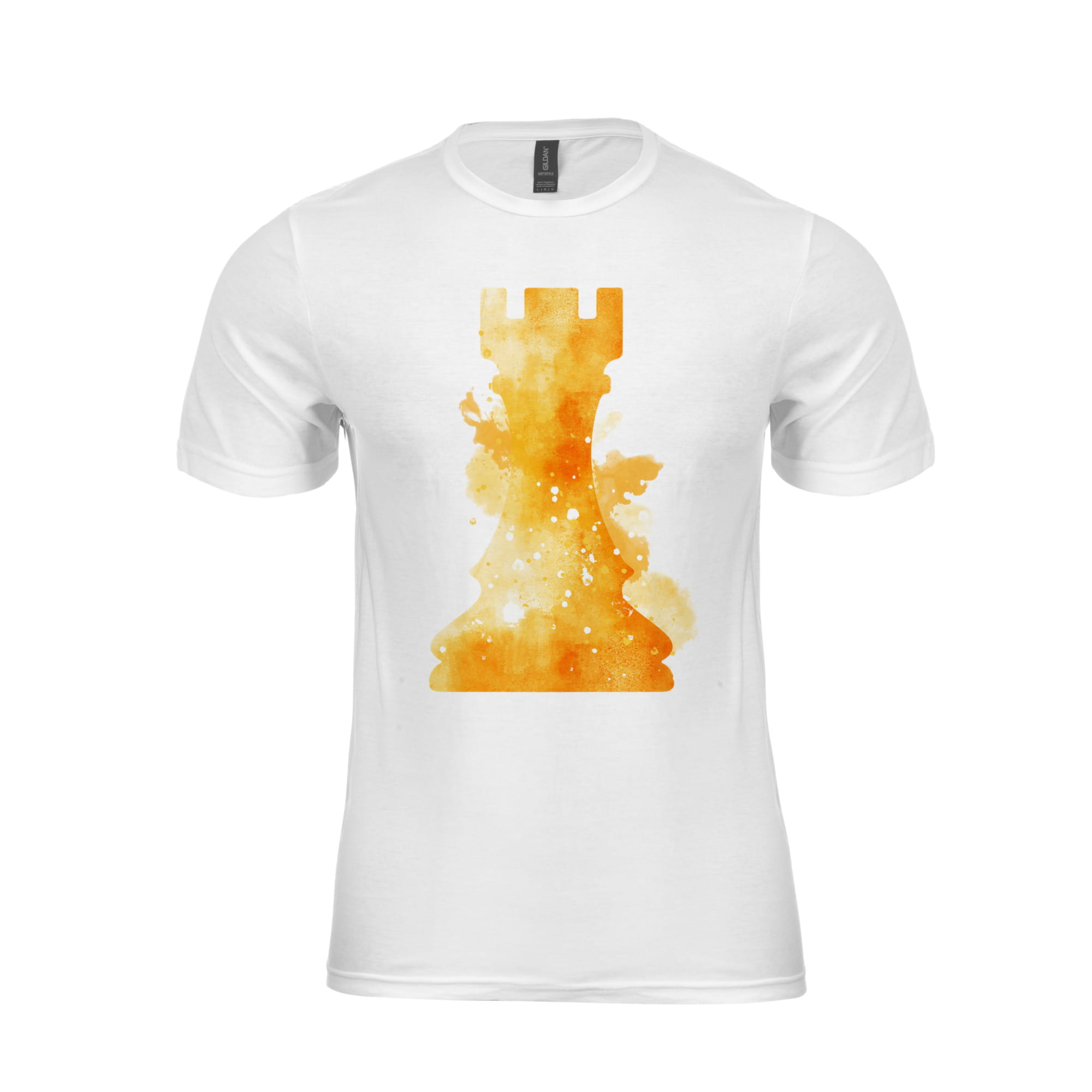 Biały T-shirt koszulka dla szachisty z dużą wieżą "rook Splash"