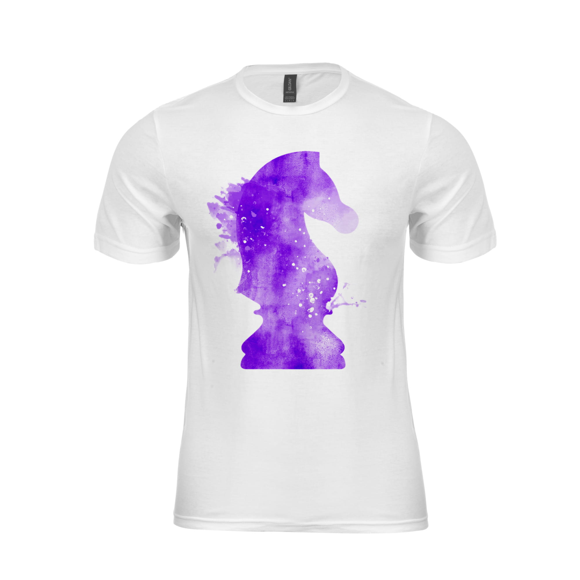 Biały T-shirt koszulka dla szachisty z dużym skoczkiem "Knight Splash"