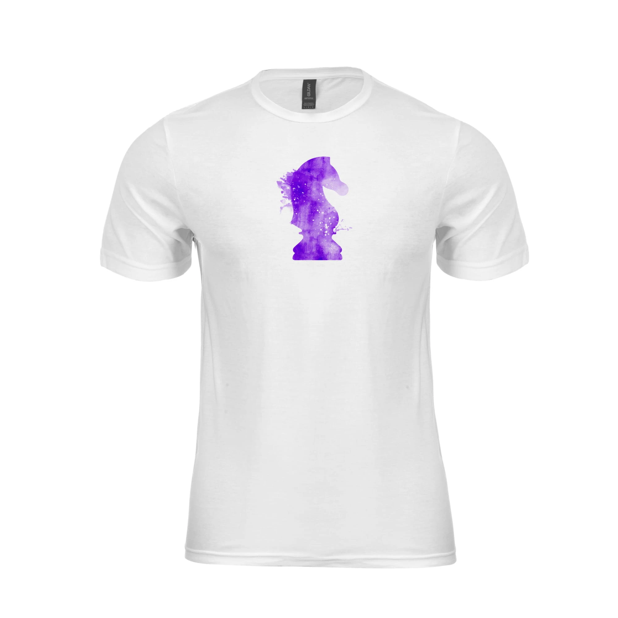 Biały T-shirt koszulka dla szachisty z grafiką skoczka "Knight Splash"