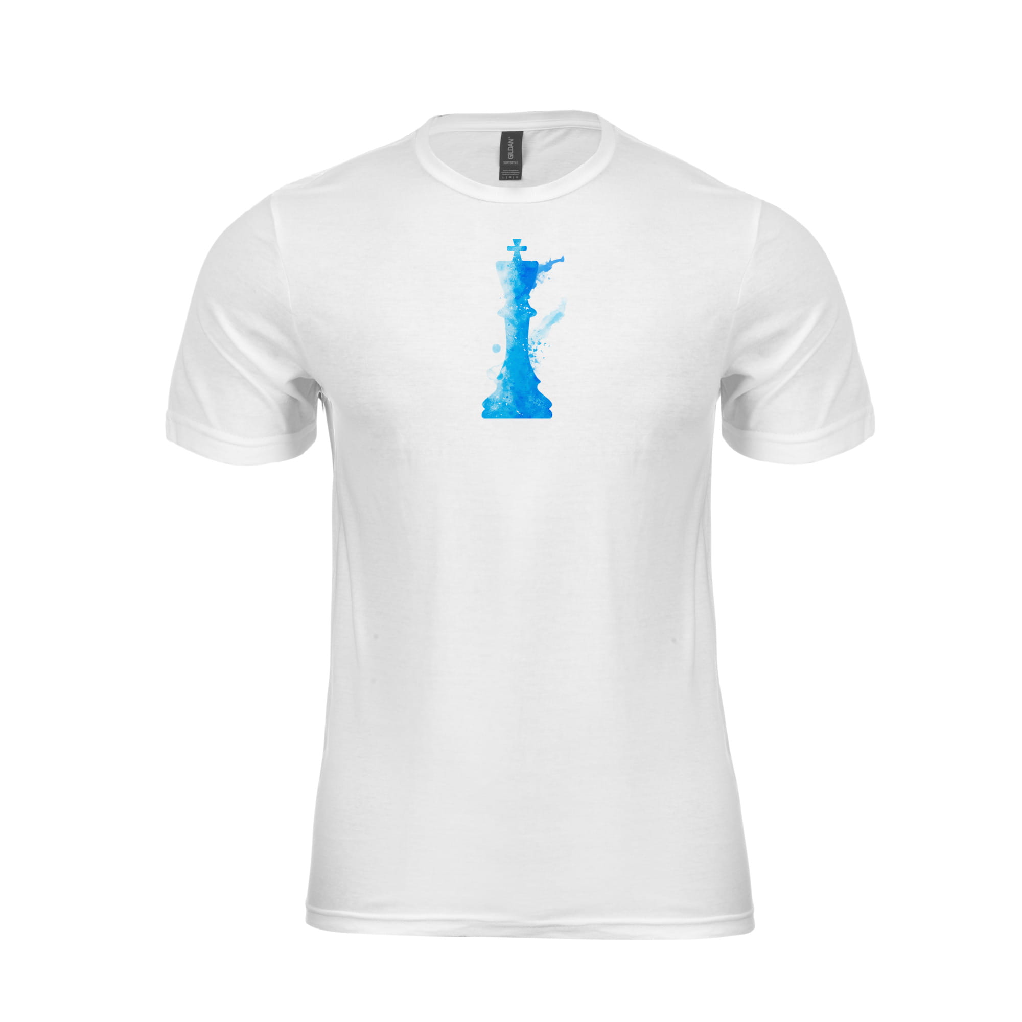 Biały T-shirt koszulka dla szachisty z królem "King Splash"