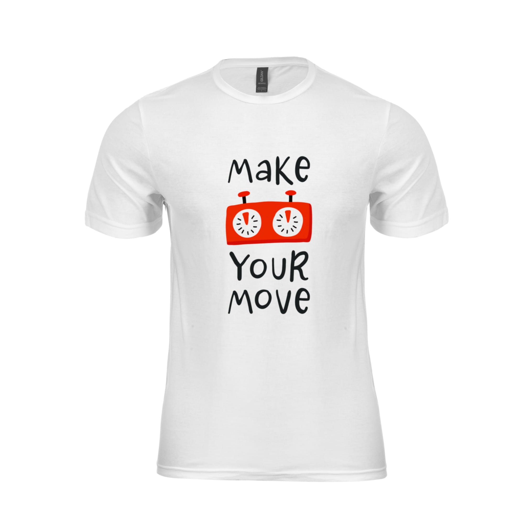 T-shirt męski biały 100% bawełna 180g/m2 z wysokiej jakości nadrukiem make your move