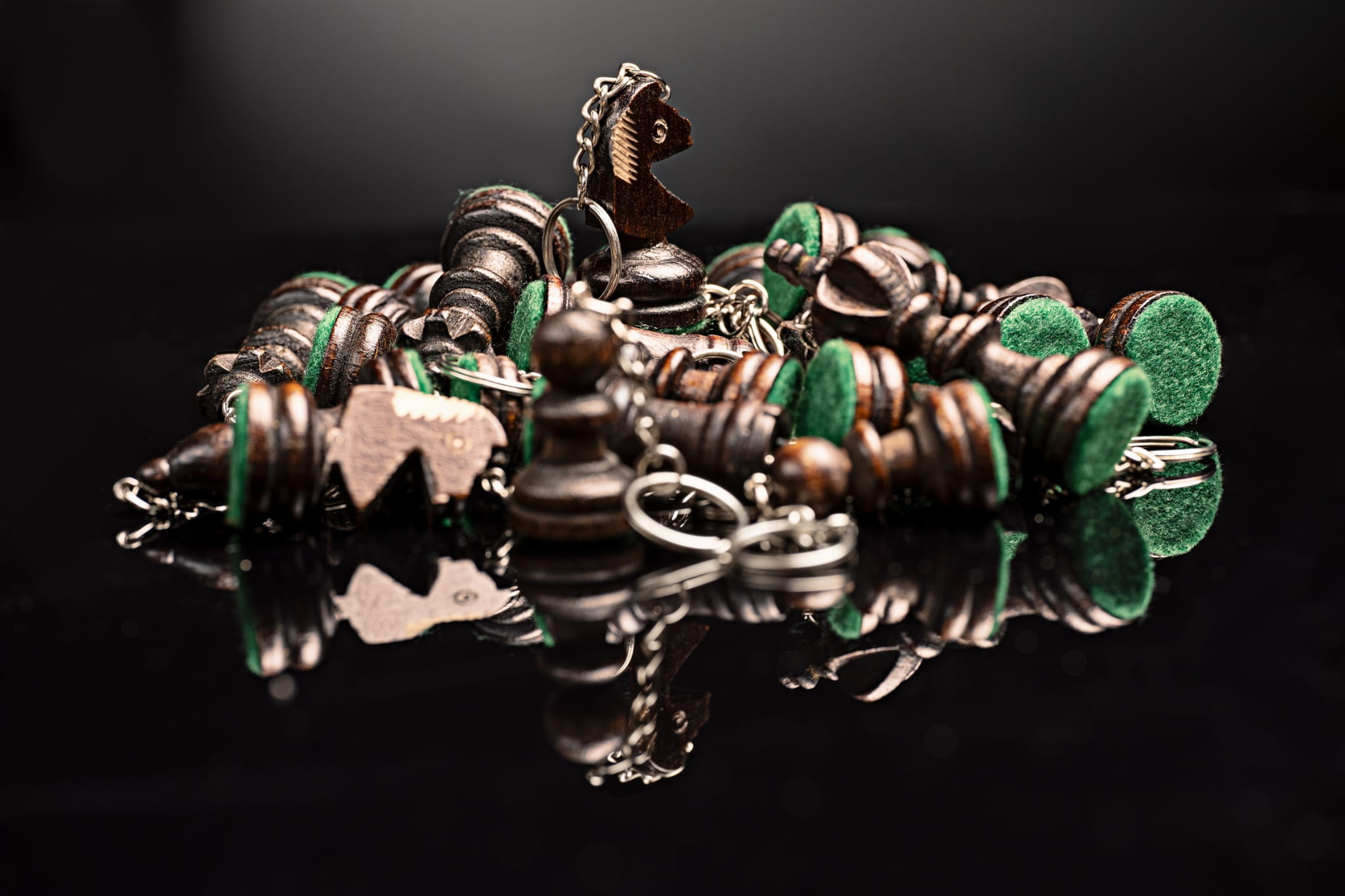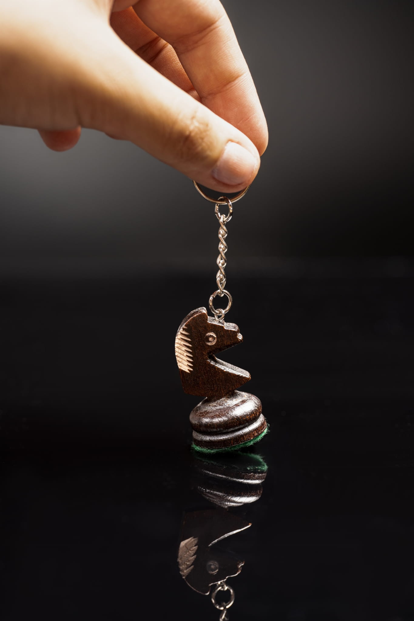 Drewniany breloczek szachowy z metalowym zapięciem. Gadżet szachowy.