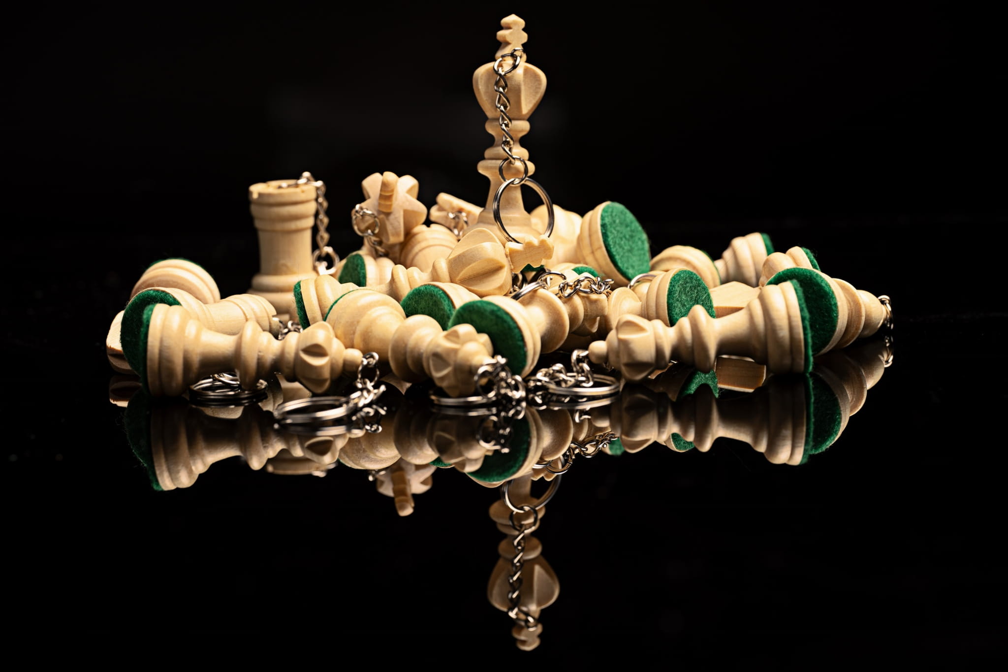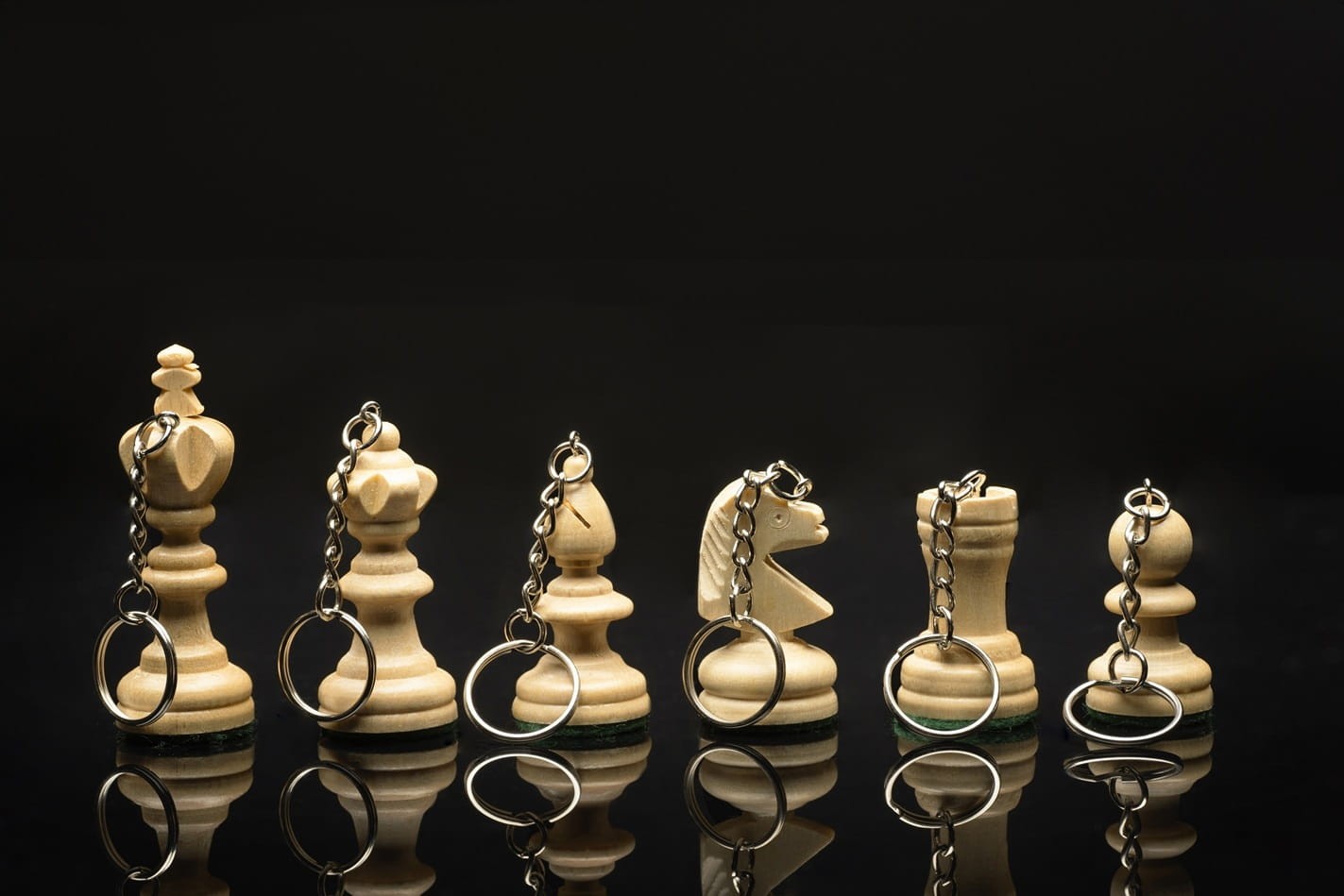 Drewniany breloczek szachowy z metalowym zapięciem. Gadżet szachowy.