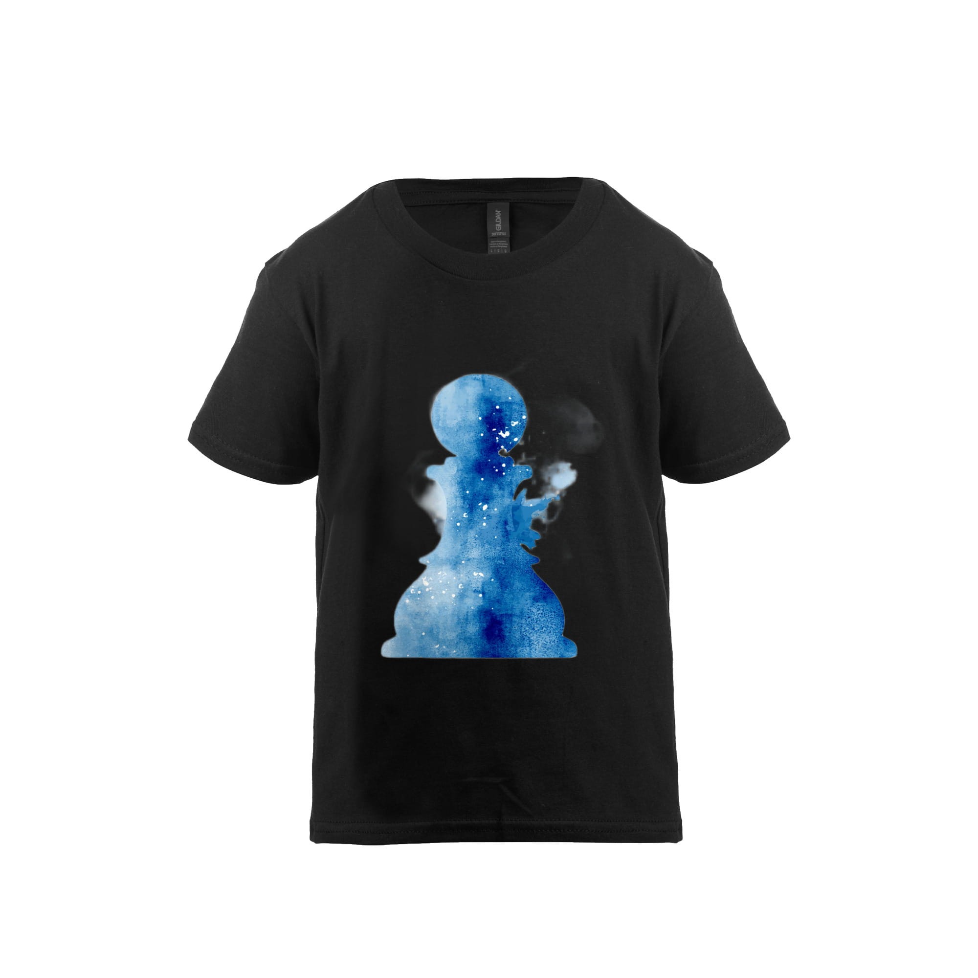 Czarny T-shirt dziecięcy dla szachisty z grafiką pionka "Pawn Splash"