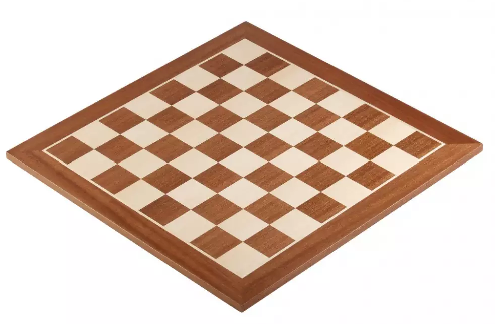 Intarsja mahoń/jawor jest najpopularniejszą wśród wszystkich drewnianych szachownic turniejowych.