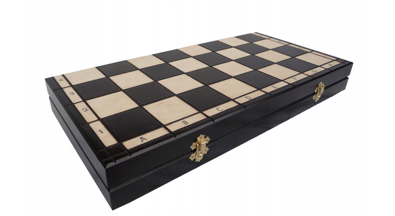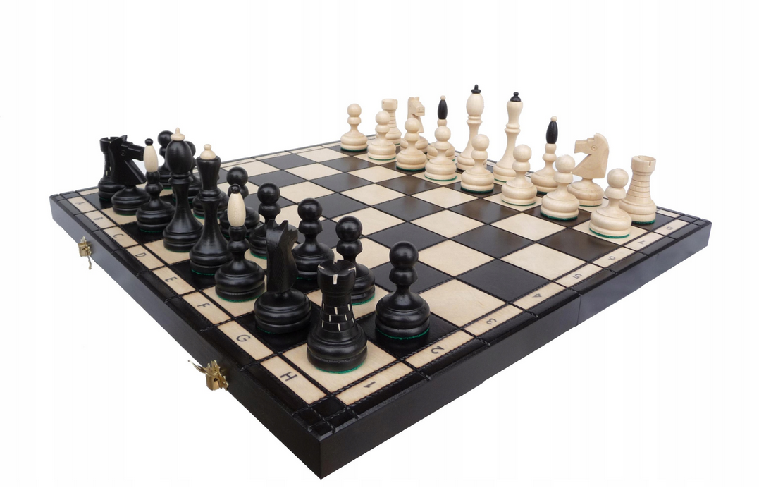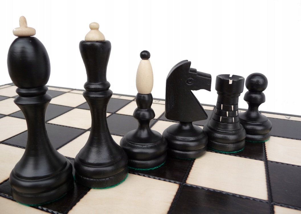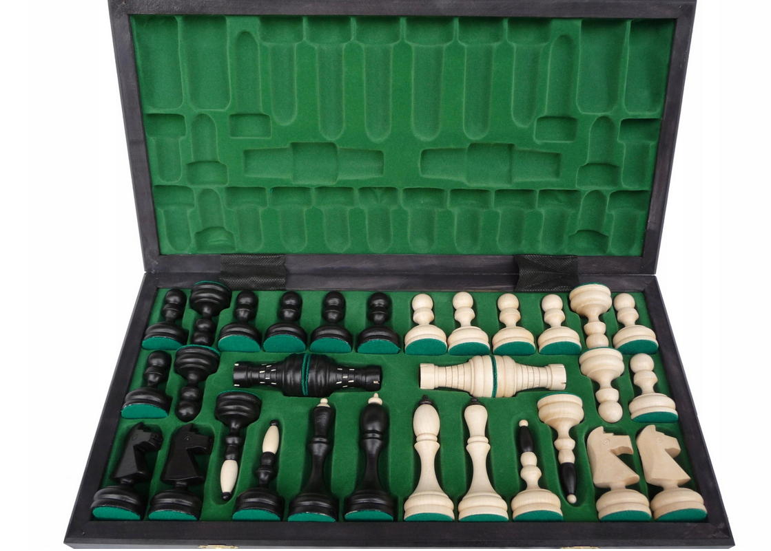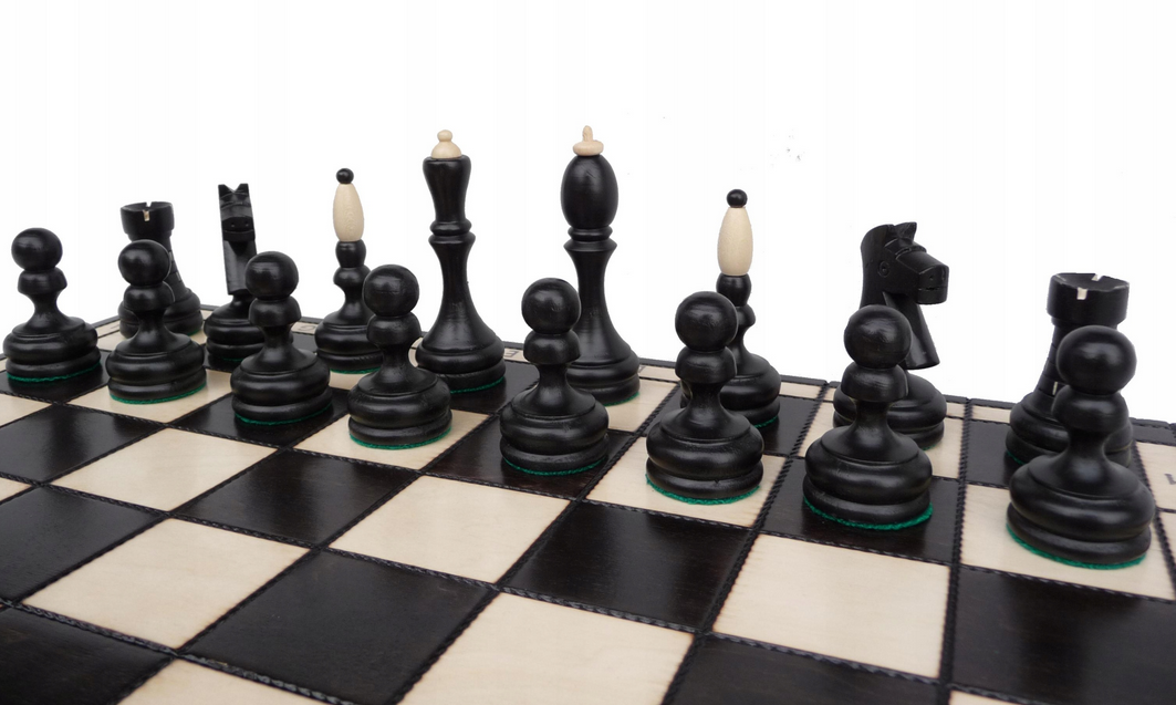 Duże szachy czarne drewniane klasyczne 50x50cm dwukolorowe gońce