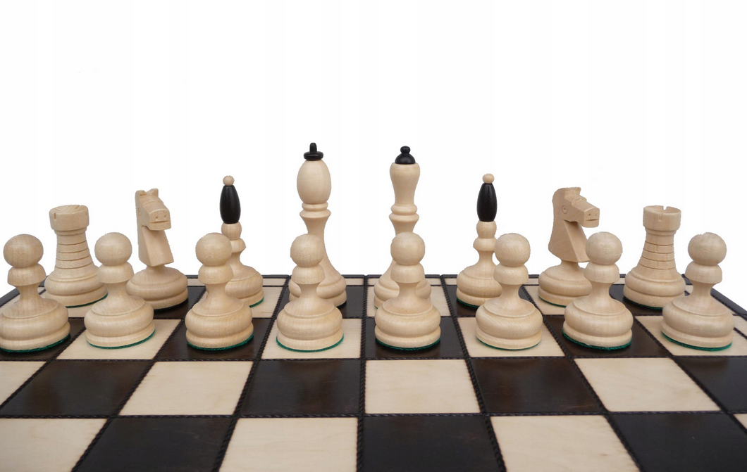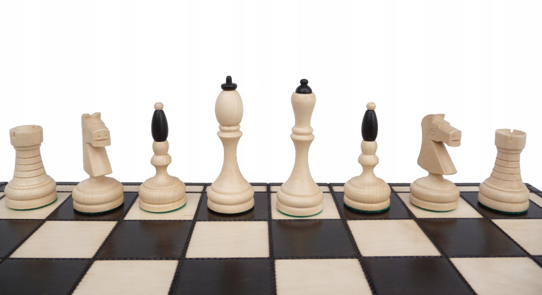 Szachy wykonane z drewna grabowego z ciekawymi i czytelnymi figurami szachowymi