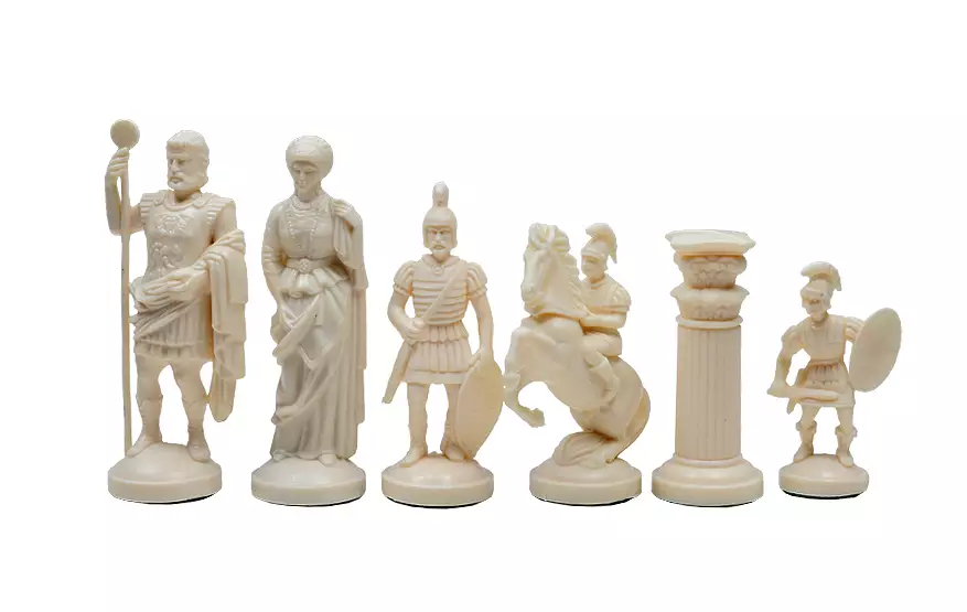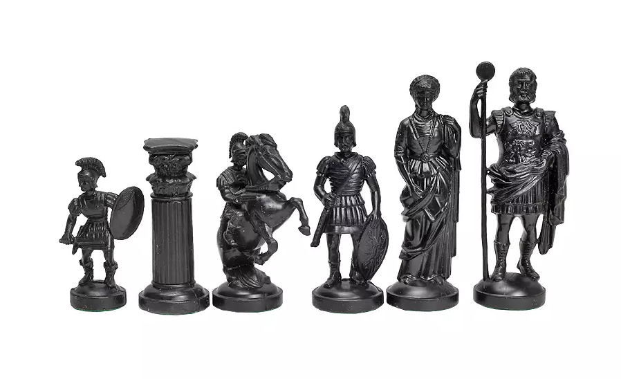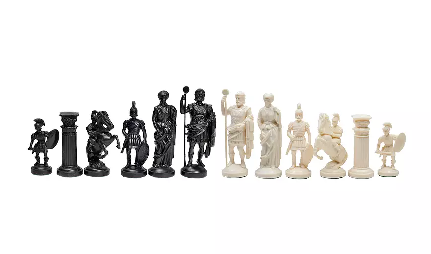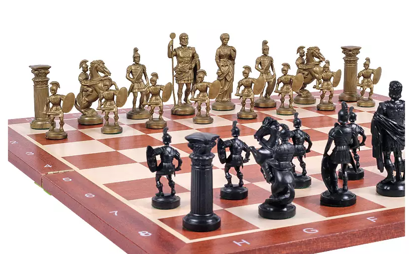 Wieże przypominają rzymskie kolumny, a skoczki są uosobieniem rzymskich legionistów na koniach. Szachownica sama w sobie staje się symbolicznym terenem podbicia i rządzenia, oddając ducha strategicznych podbojów cesarstwa.