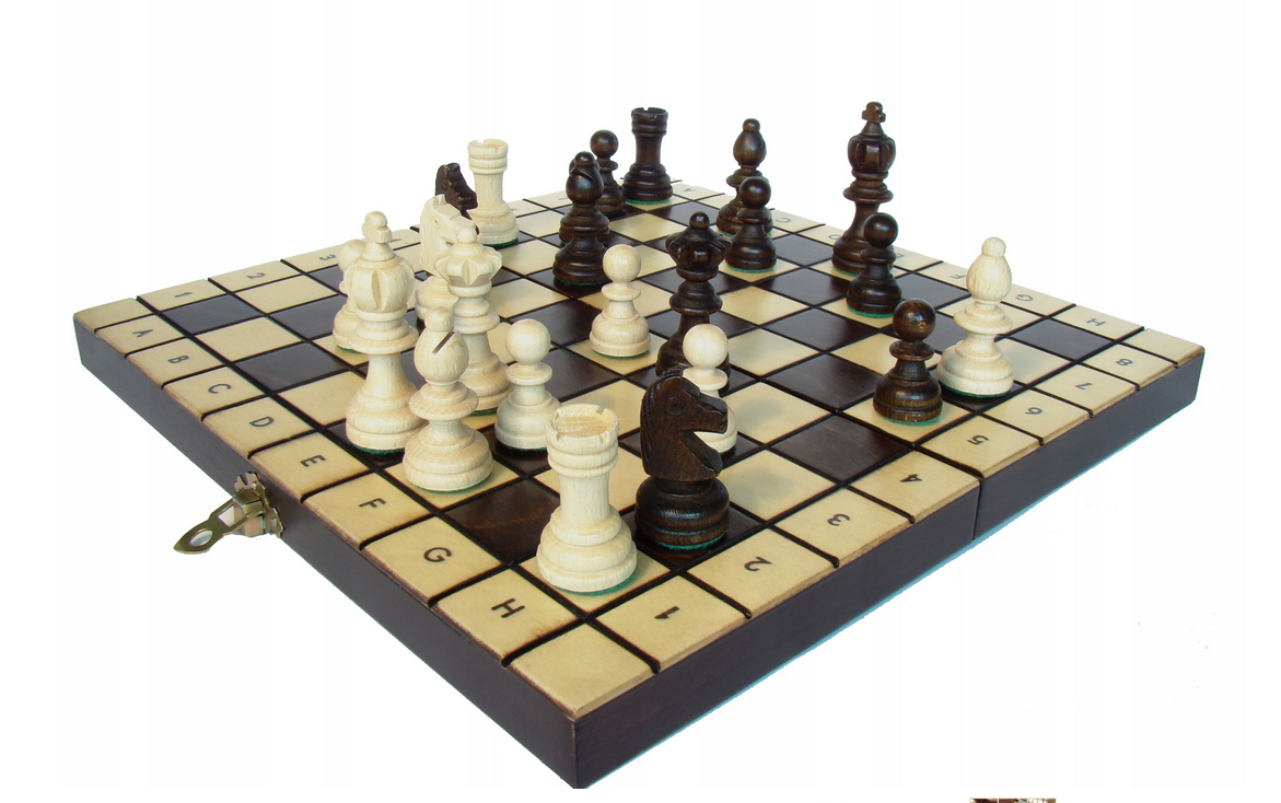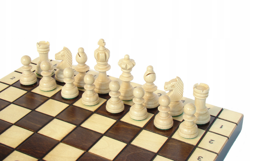 Małe szachy drewniane 30x30cm olimpijskie dla początkujących