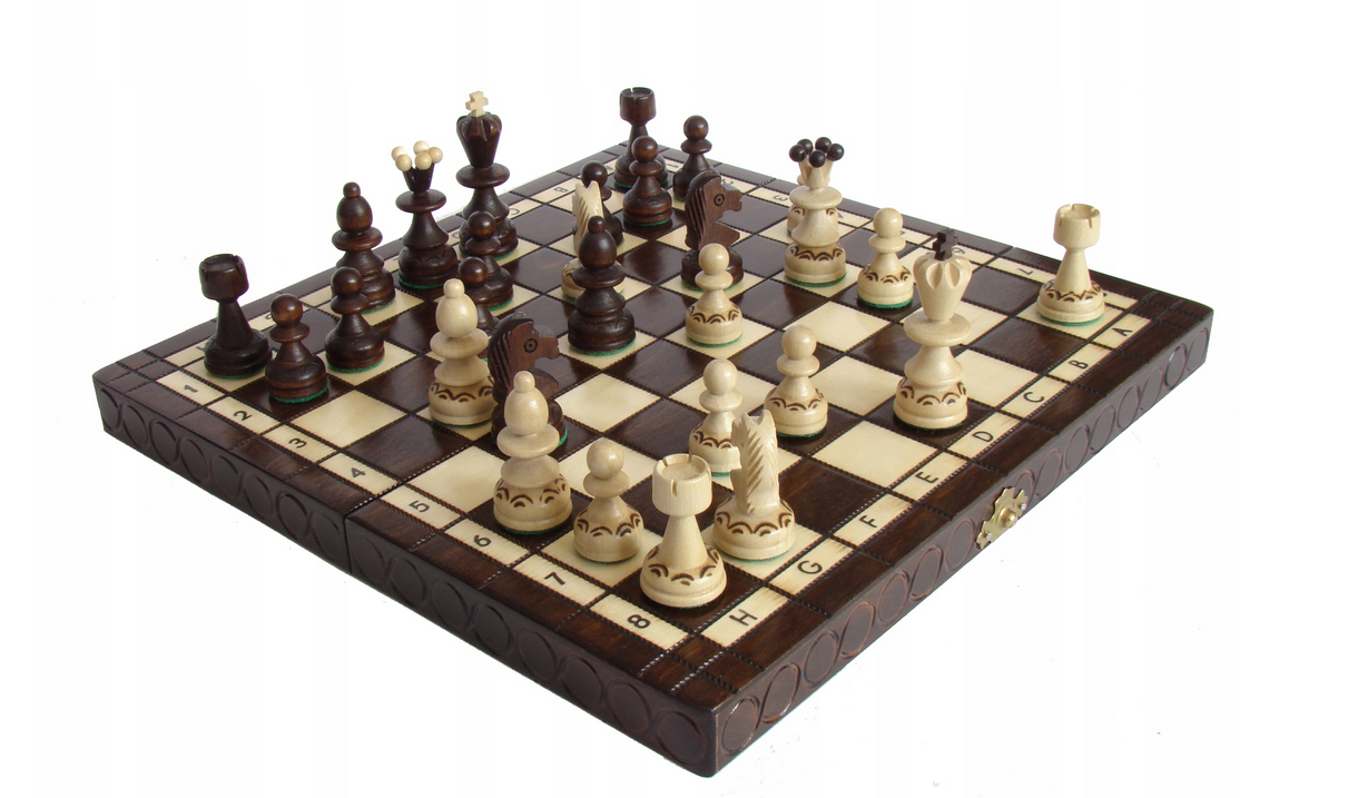 Małe szachy drewniane perełka 29x29cm unikalne zdobienia