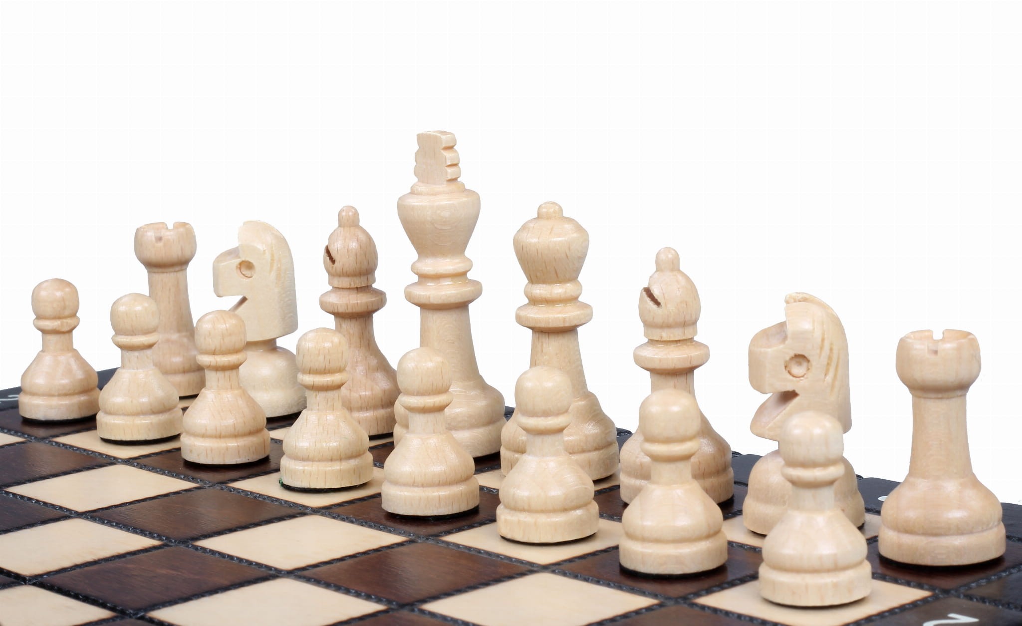Szachy Szkolne to jeden z najpopularniejszych kompaktowych zestawów szachowych.Figury szachowe w klasycznym stylu, wykonano z grabu. Wysokość króla wynosi 6 cm.