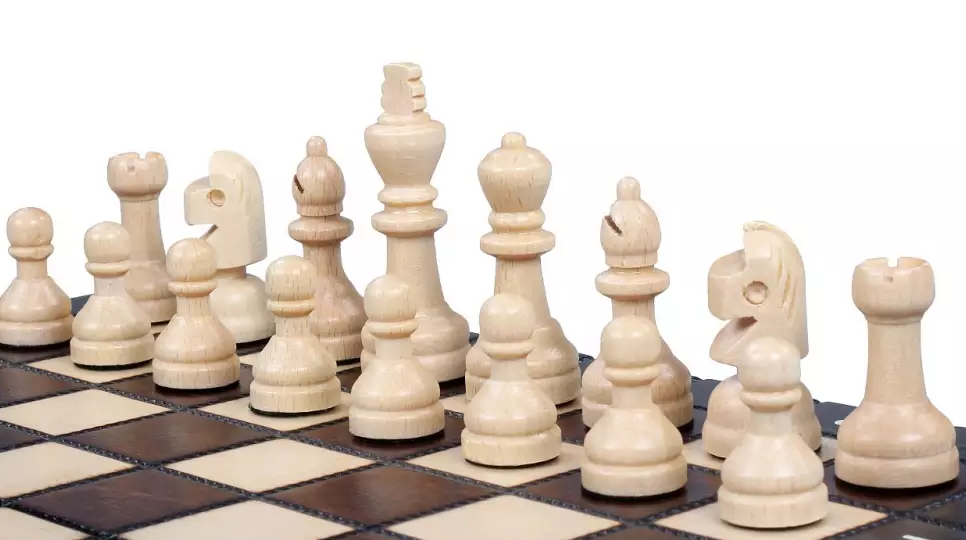 Tradycyjna drewniana szachownica została wyposażona w dopasowaną wkładkę do przechowywania figur.