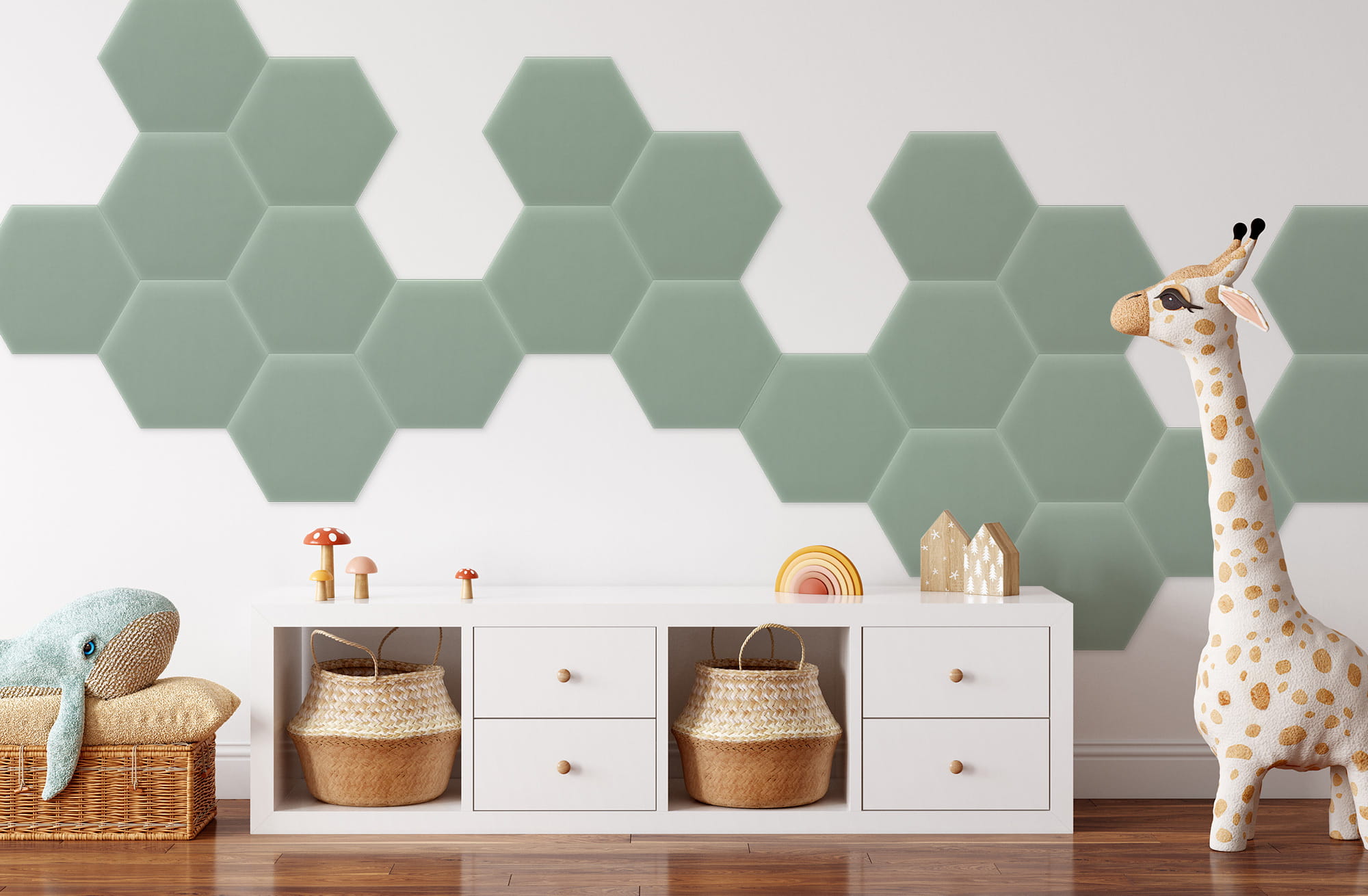 Z panelami tapicerowanymi heksagon Magic Velvet każda ściana może stać się wyjątkową ozdobą Twojego wnętrza!