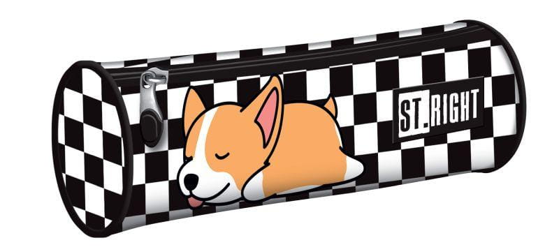 Piórnik tuba SLEEPY CORGI ST.RIGHT biało czarna kratka szachownica