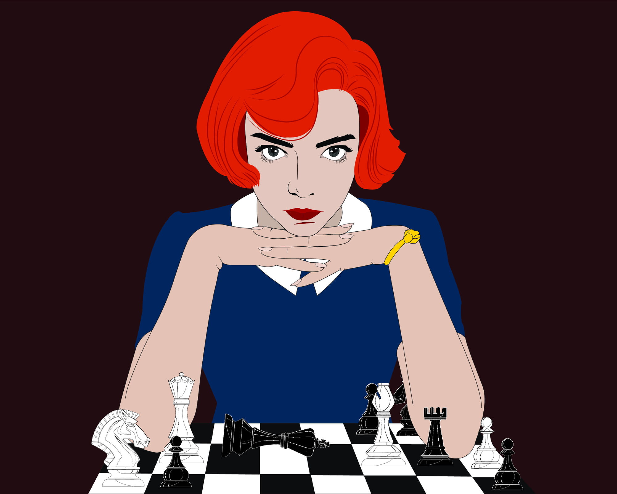 Plakat przedstawiający postać ze znanego serialu Queens Gambit szerokość 80cm, wysokość 60cm
