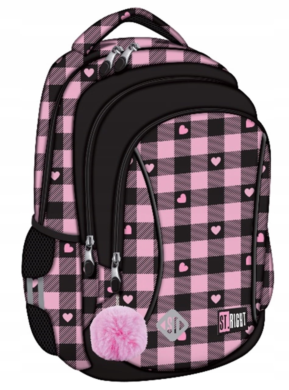 Plecak szkolny 3-komorowy 20l St.right czarno-różowa szachownica