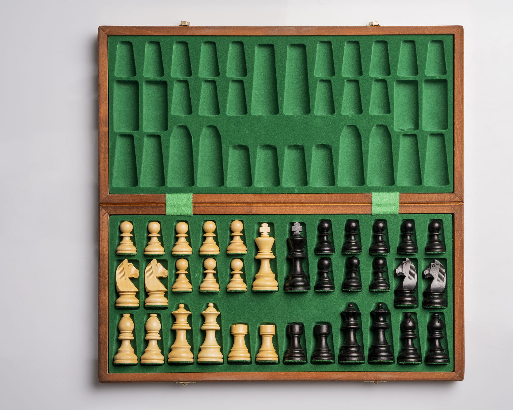 Z połączenia eleganckiej, intarsjowanej mahoniem kasetki i indyjskich figur Standard 3,5 powstał unikalny komplet szachów turniejowych Nr 5, stworzony z myślą o najbardziej wymagających szachistach.