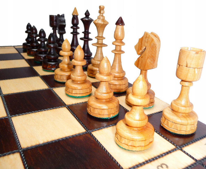 Szachy wykonane z drewna czereśniowego w indyjskim stylu