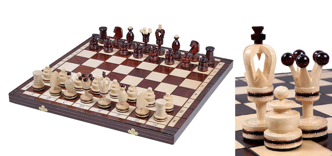 Szachy drewniane królewskie inkrustowane 49x49cm