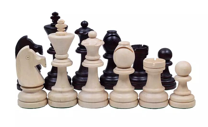 Figury zostały wykonane ręcznie z najwyższej jakości drewna grabu. Dodatkowo dociążane metalem, podklejone zielonym filcem, gładko przesuwają się po szachownicy.