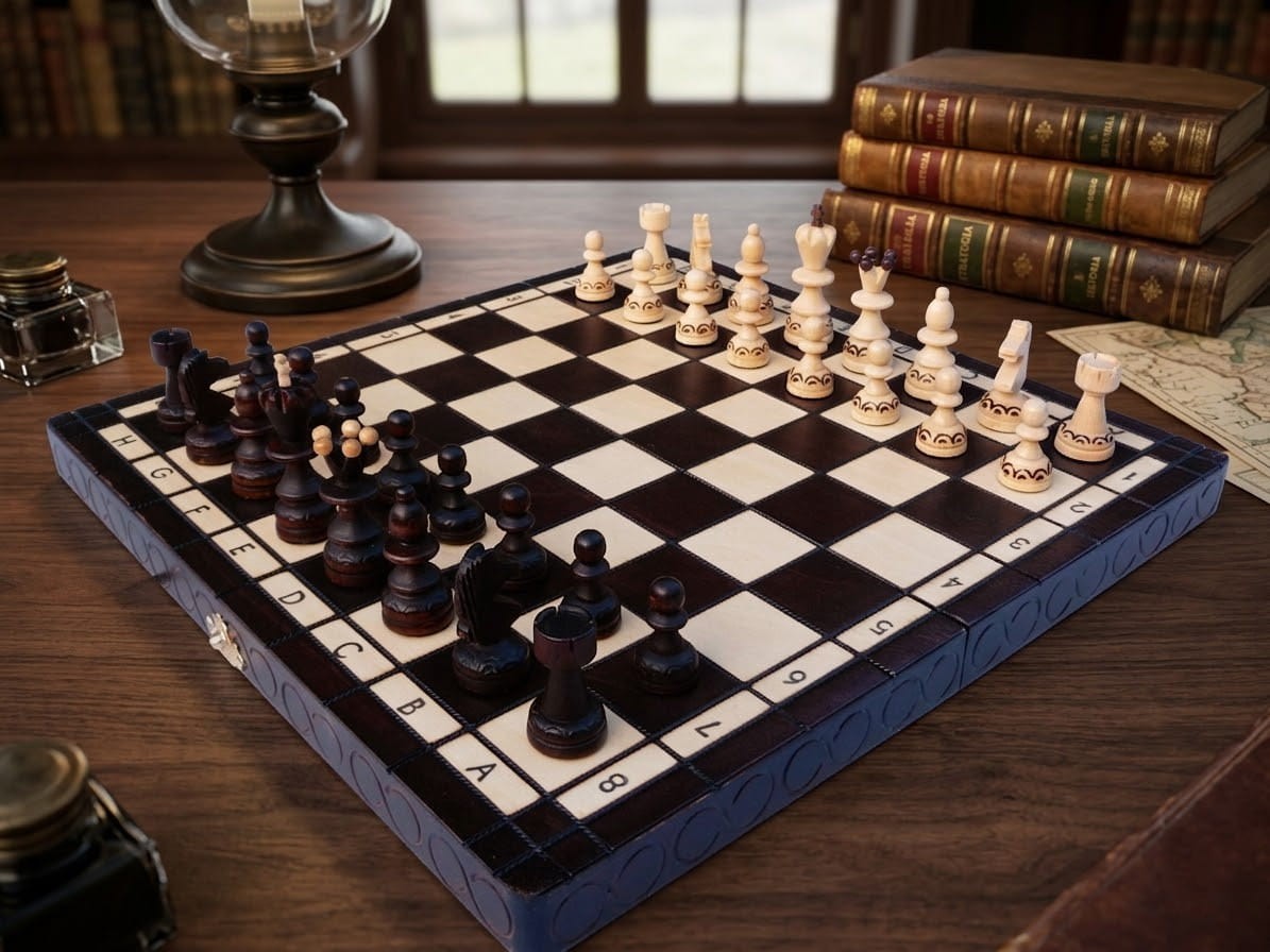 Szachy perełka czarna średnie 35x35cm czarne drewniane