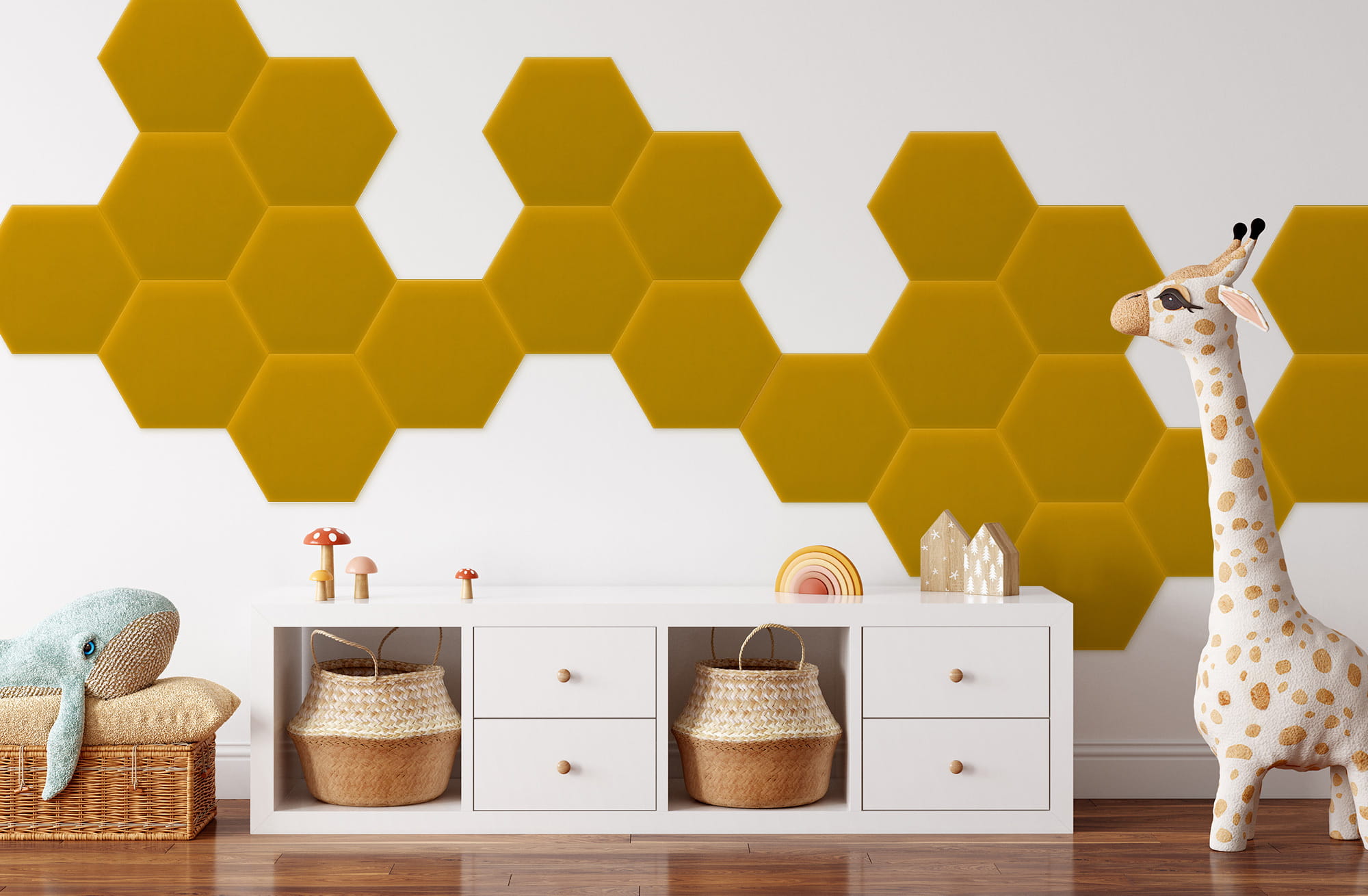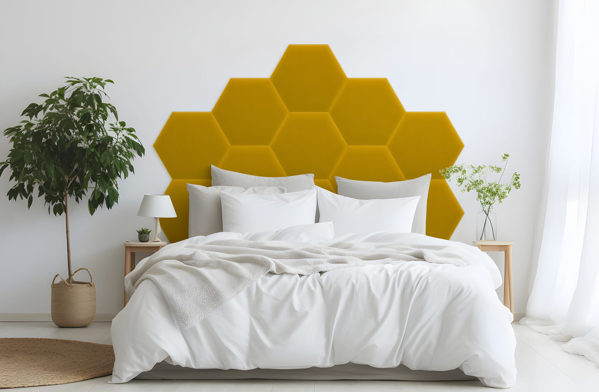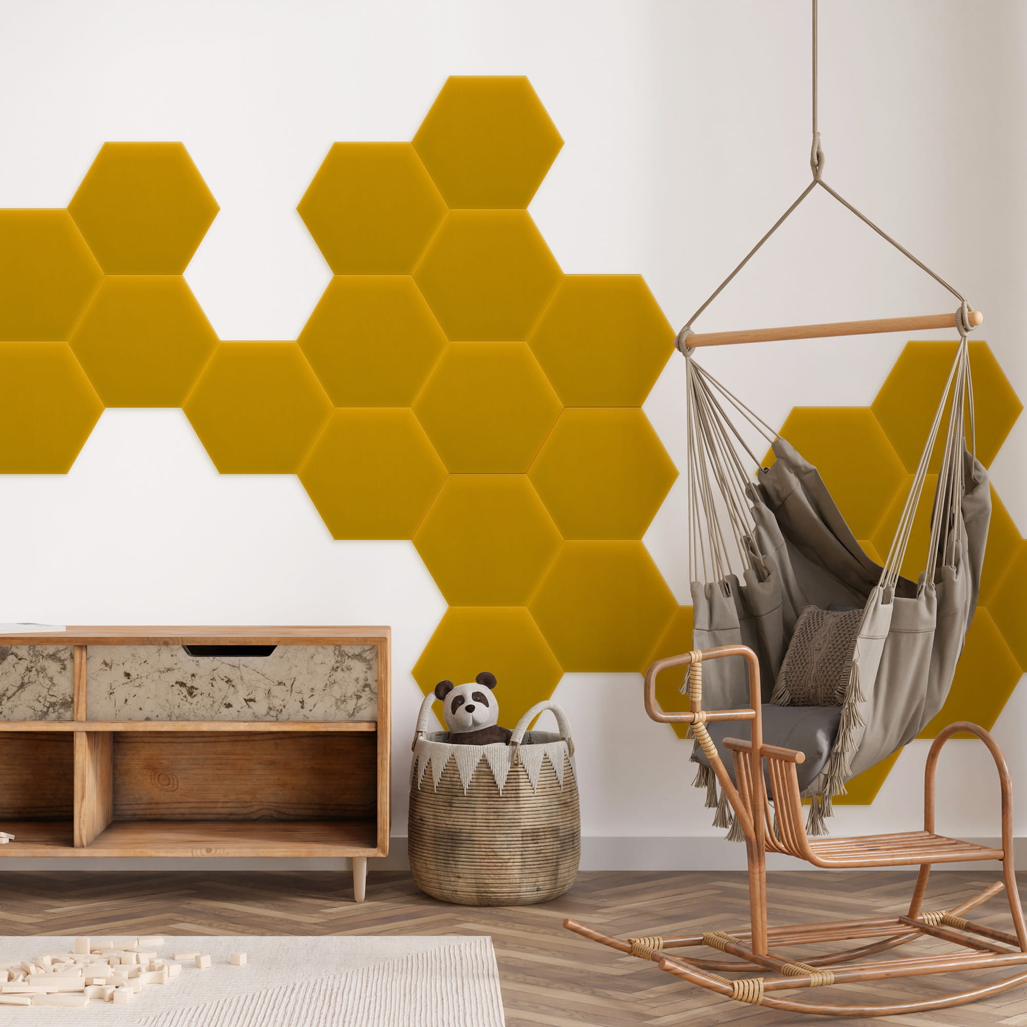 Żółty Panel tapicerowany HEKSAGON plaster miodu